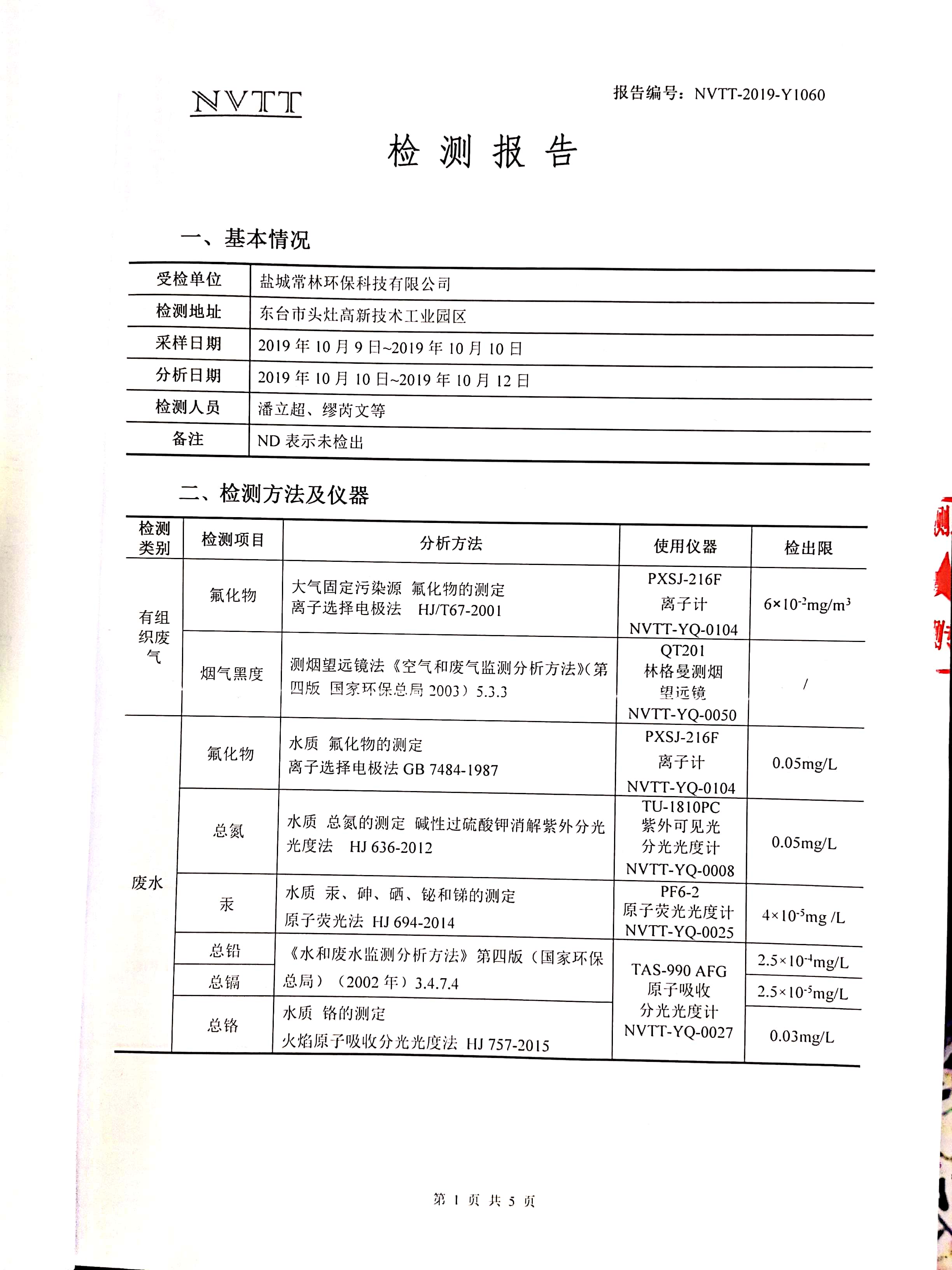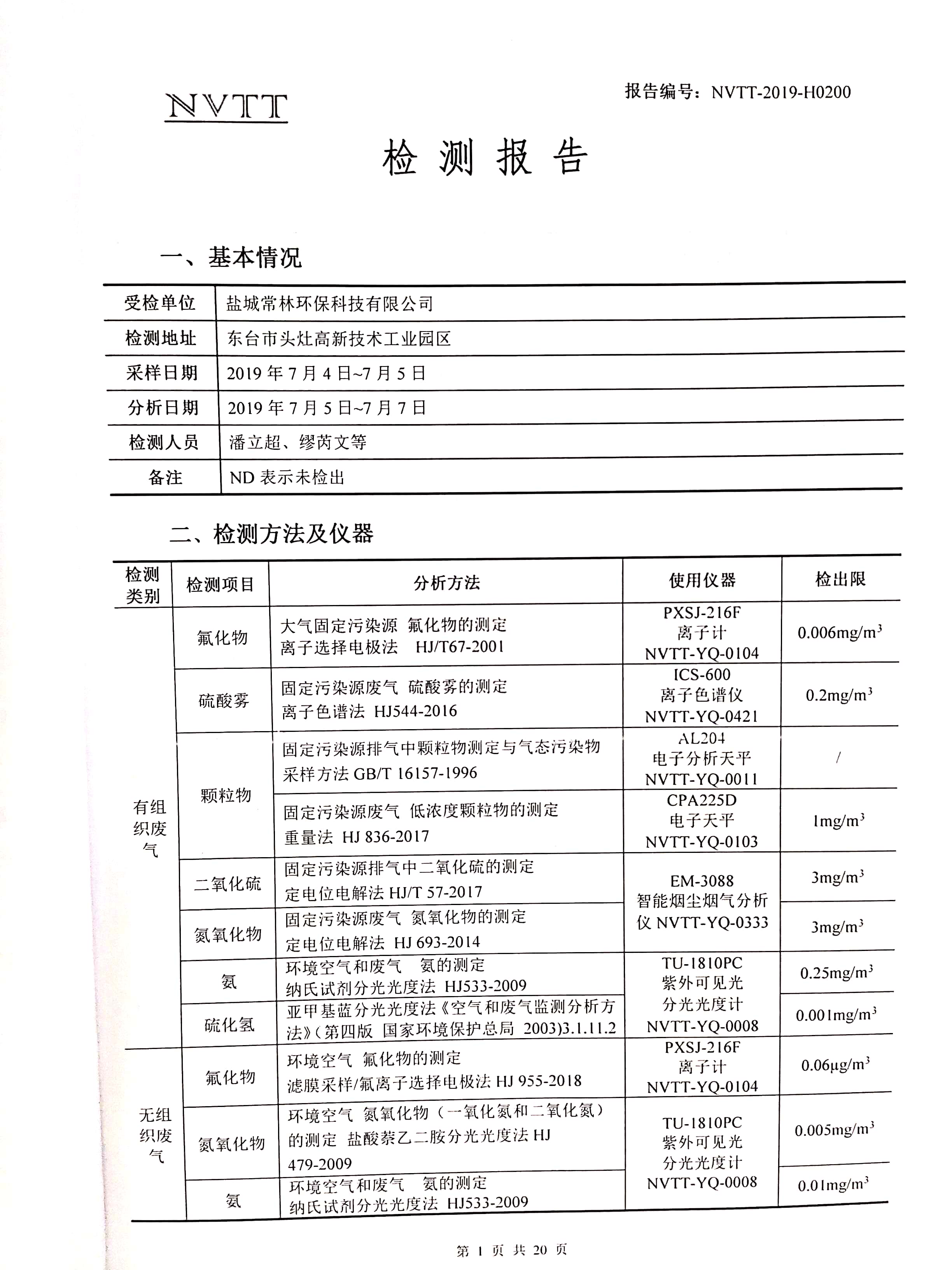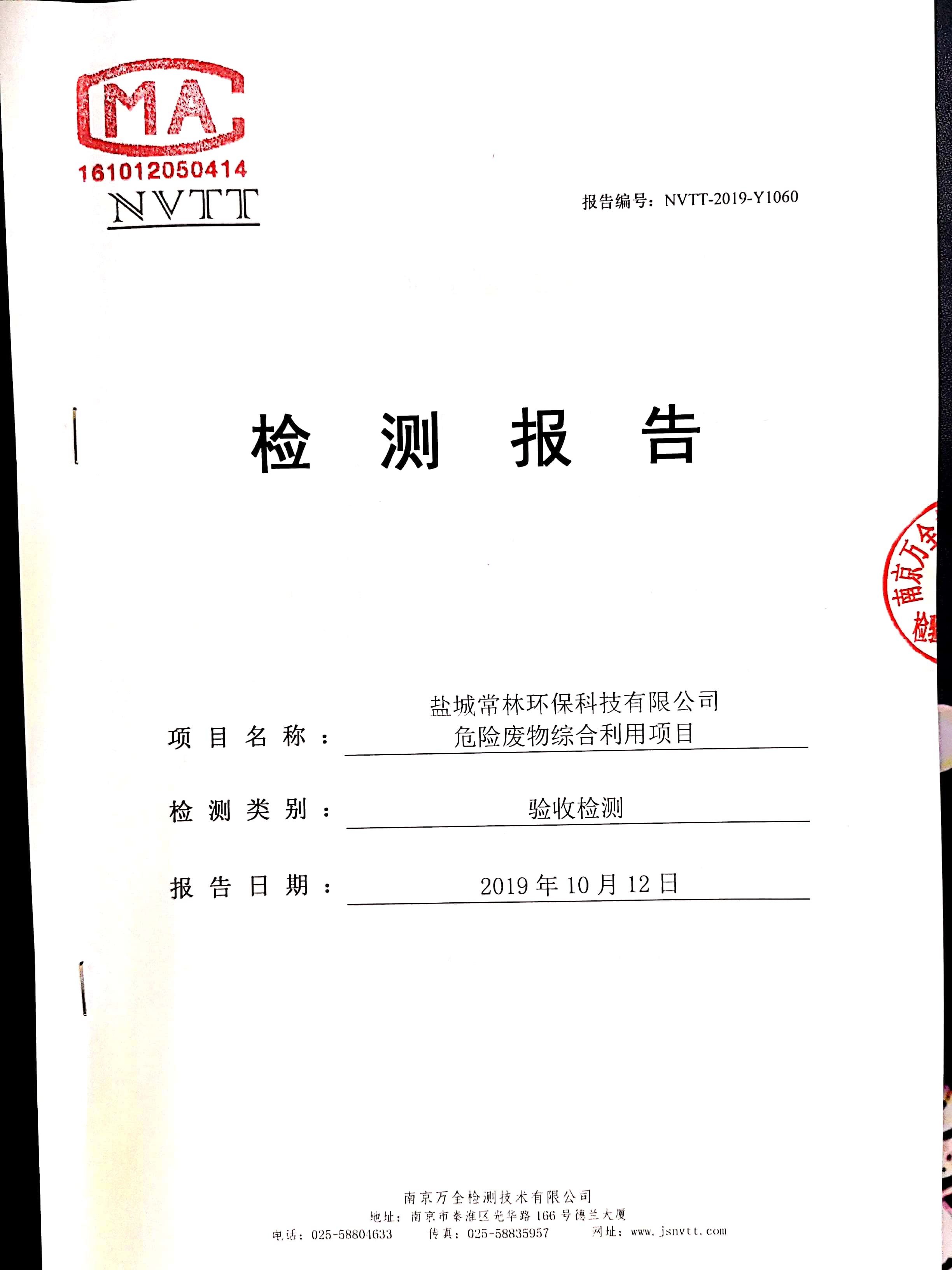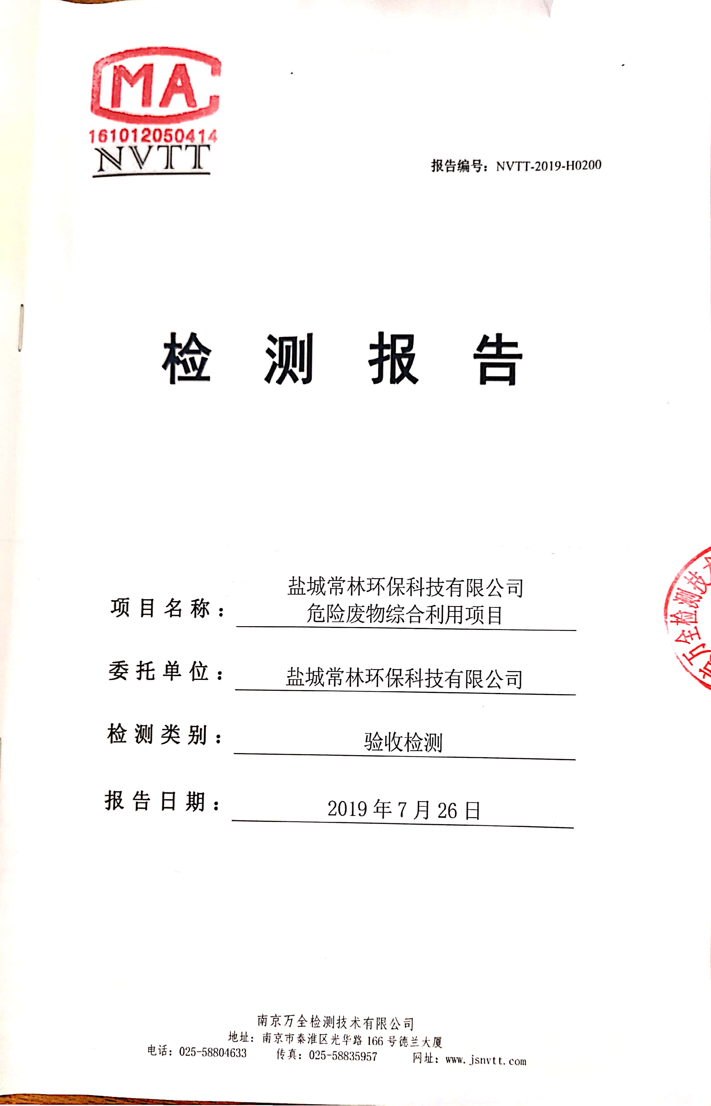 公司2019年第二季度检测报告公示 您现在的位置:盐城常林环保科技有限公司 >> 信息发布 >> 正文内容   2019年10月24日 点击: 次 盐城常林环保科技有限公司2019年第二季度检测报告公示如下: [ 字体:小 大 ] [ 收藏 ] [ 打印文章 ] 相关文章 没有相关内容