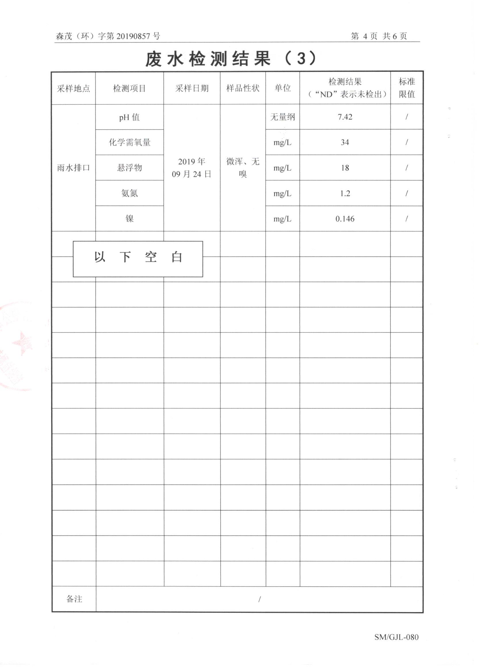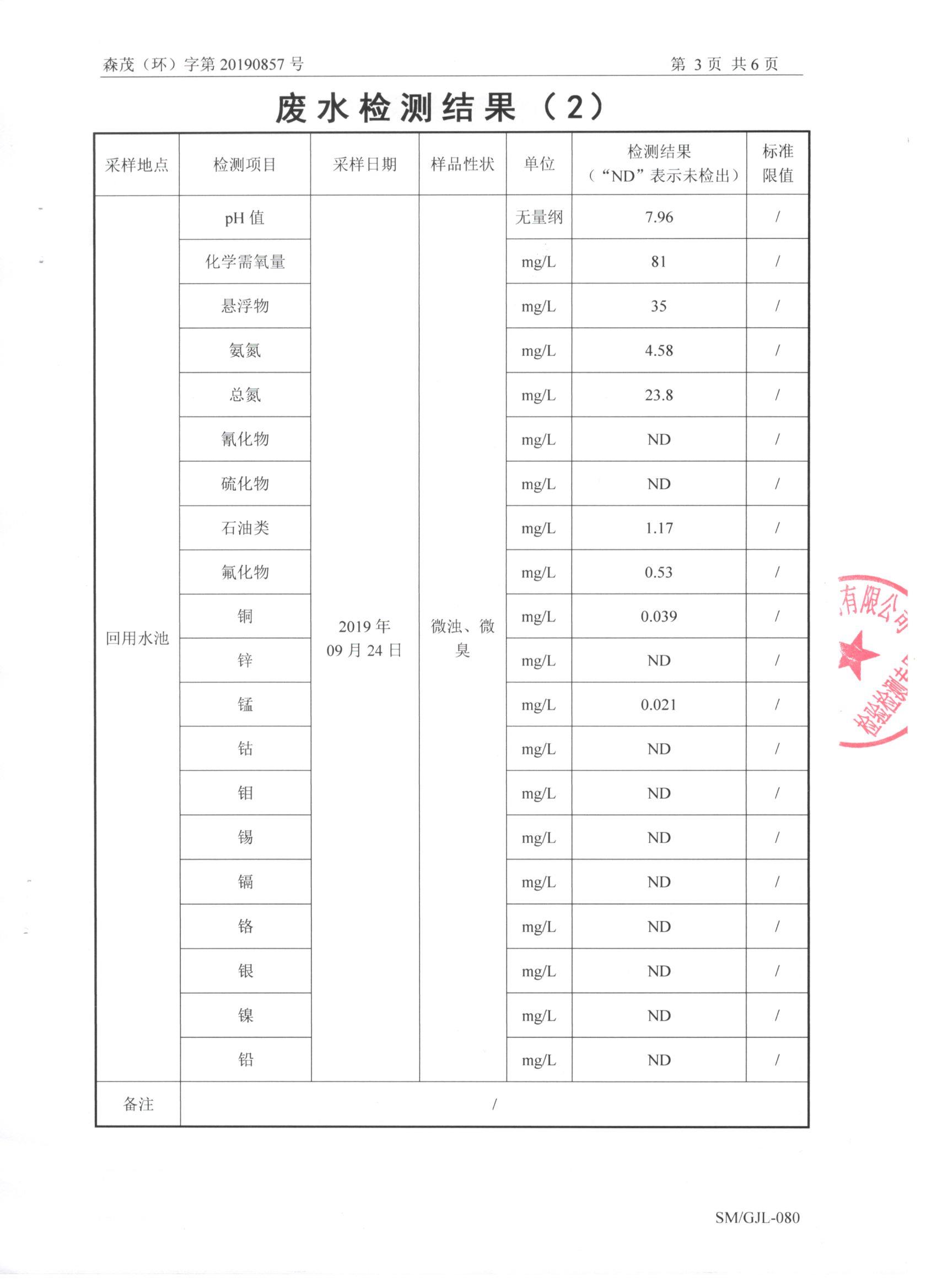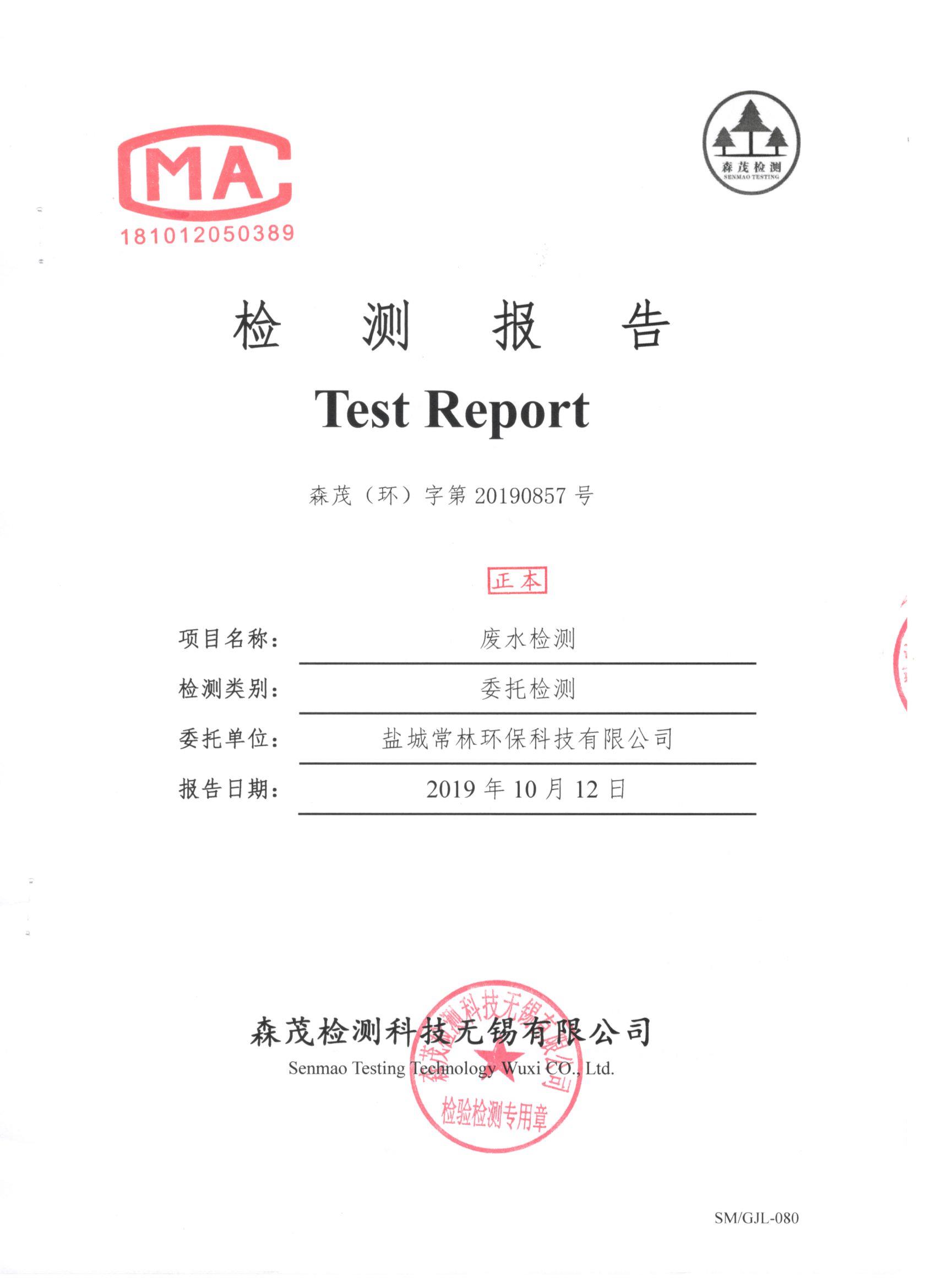 公司2019年第三季度废水检测报告公示 您现在的位置:盐城常林环保科技有限公司 >> 信息发布 >> 正文内容   2019年10月28日 点击: 次 盐城常林环保科技有限公司2019年第三季度废水检测报告公示如下: [ 字体:小 大 ] [ 收藏 ] [ 打印文章 ] 相关文章 没有相关内容