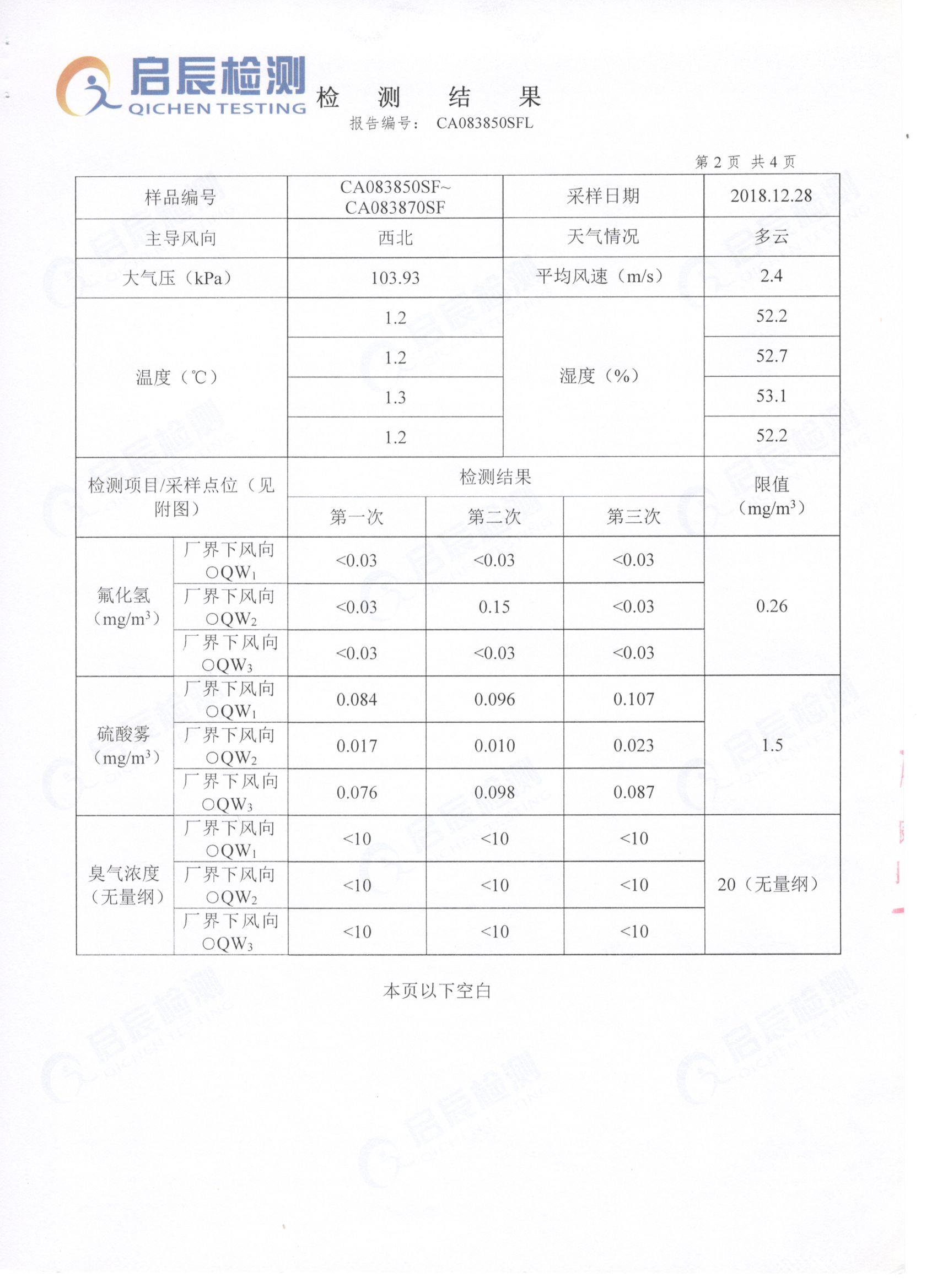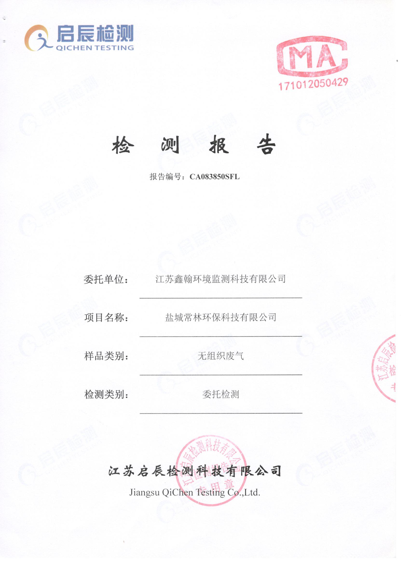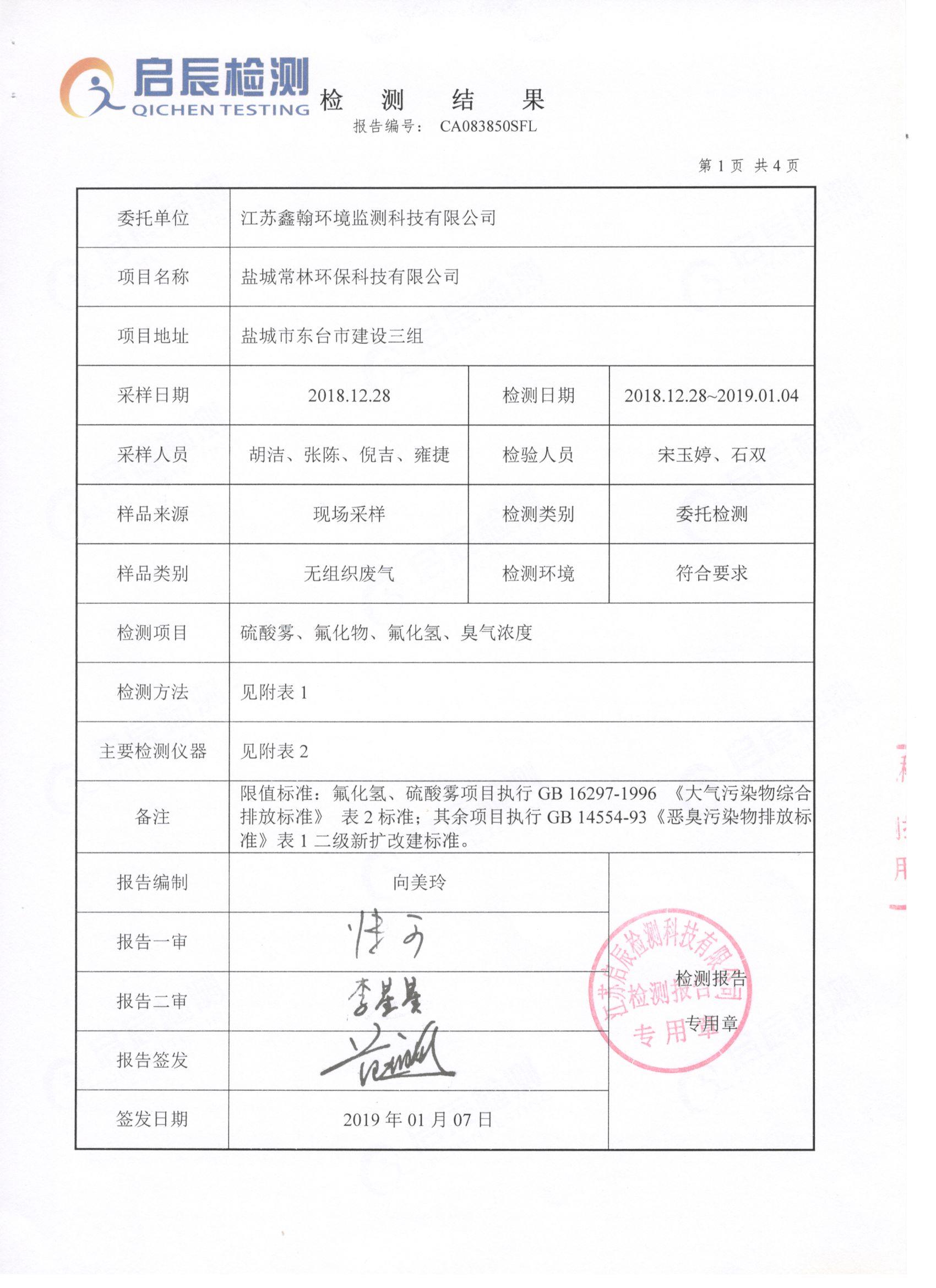 公司2018年第4季度无组织废气检测报告 您现在的位置:盐城常林环保科技有限公司 >> 信息发布 >> 正文内容   2019年05月15日 点击: 次 盐城常林环保科技有限公司2018年第4季度无组织废气检测报告公示如下: [ 字体:小 大 ] [ 收藏 ] [ 打印文章 ] 相关文章 没有相关内容